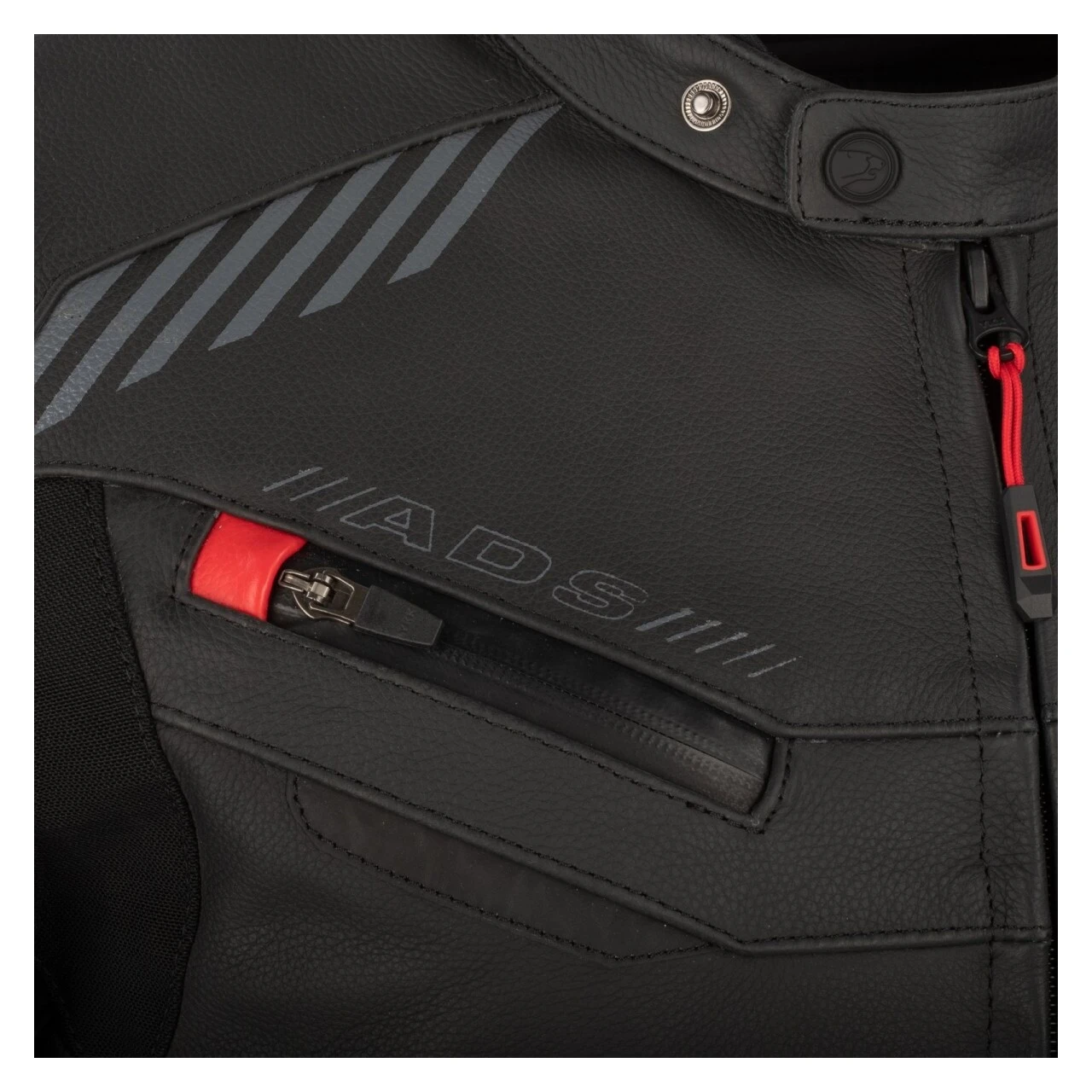 Technical jacket made with high quality cowhide and ShieldTex stretch fabric inserts. It has an ADS ventilation system with heat-sealed zips, a laminated waterproof BWTech Mega membrane and a high-performance Shelltech Mega removable thermal lining that allows it to adapt to different weather conditions. It incorporates CE certified protections on shoulders and elbows as well as a pocket for an optional back protector (sold separately).